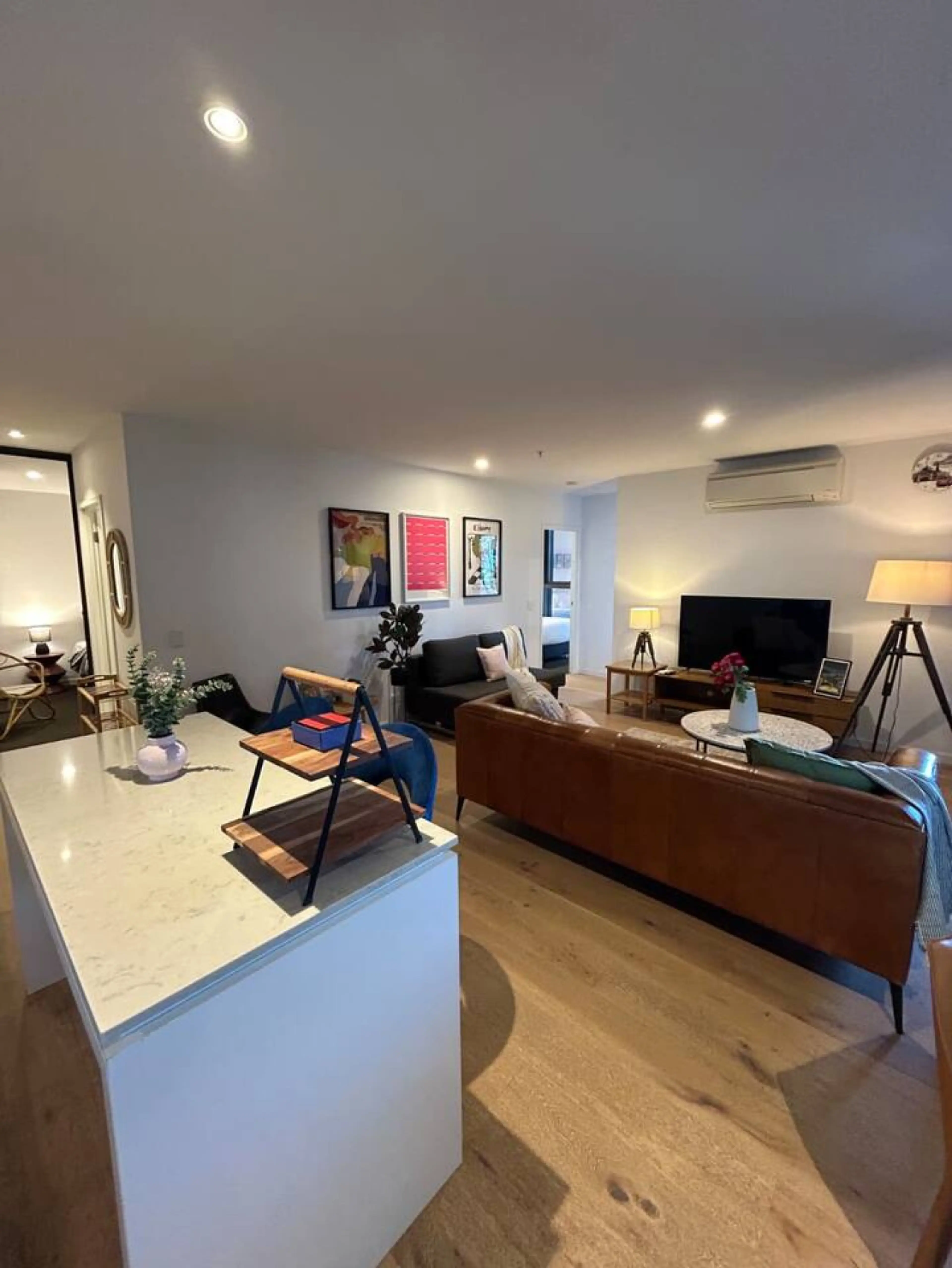Spacious Luxe 3BR Apartment in Melbourne CBD. Unwind in a stunning city apartment with king bed, 5 beds sleeping 8, sweeping balcony views, free secure parking, full kitchen, and laundry. Enjoy resort-style living with pool, gym, outdoor dining, and BBQ area. Perfect for families, groups, or bus...